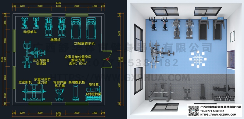60m²企事业单位健身房