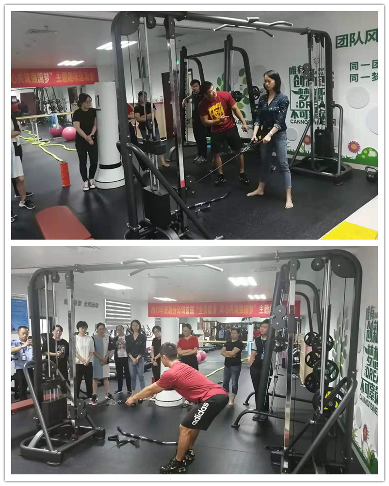 2019年8月26日,南宁某集团职工健身房自6月在广西米兰采购室内健身器材以来,广西米兰根据其职工的男女比例及健身需求,为该集团员工提供健身教练上门免费培训健身器材使用及提供健身知识讲座,科学的运动教学指导。经过有趣互动交流,让职工在轻松愉悦的气氛下感受到运动的乐趣。